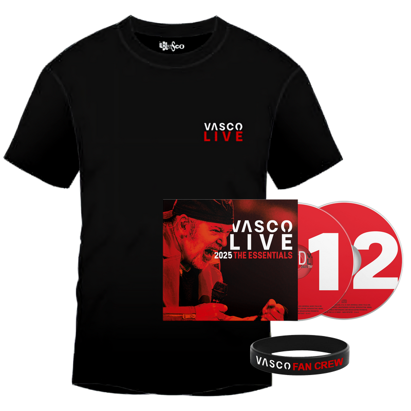 VASCO LIVE 2025 – THE ESSENTIALS | Doppio CD + T-Shirt + Bracciale Vasco Fan Crew